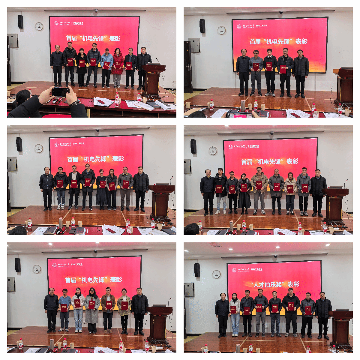 2024年,学院涌现出了一批在教书育人、科技创新、人才培养、师资队伍建设、学生工作、管理服务等方面的先进个人。为表彰先进,浓郁争先创优氛围,会议开展了学院首届“机电先锋奖”“人才伯乐奖”颁奖,梁玮、訾斌分别为获奖代表颁发了荣誉证书并合影。