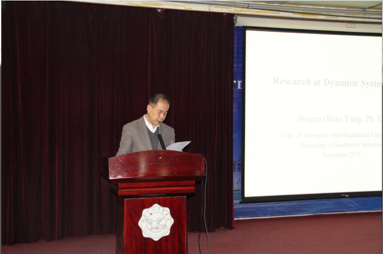 11月18日下午,应万象城娱乐awc线路副院长李团结教授邀请,美国南加州大学航天机械工程系终身正教授、南加大航天机械工程系动力系统实验室主任、美国机械工程师协会会士(ASME Fellow)杨秉恩教授来校进行学术交流,并在北校区图书馆西裙楼3楼报告厅作了题为“Modeling & Analysis of Wrinkled Membranes–An Overview”和“Dynamic Analysis of Plates and Shells by the Distributed Transfer Function Method”的两场学术报告。报告会由万象城娱乐awc线路院长仇原鹰教授主持,万象城娱乐awc线路近200名师生到场聆听报告。