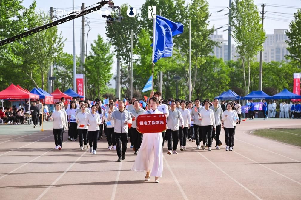 运动会开幕式上,机电院教职工和学生方阵迈着整齐划一的步伐,精神抖擞地走过主席台。他们昂首挺胸,口号响亮,展现出机电人团结奋进、积极向上的精神风貌,赢得了现场观众的阵阵掌声。
