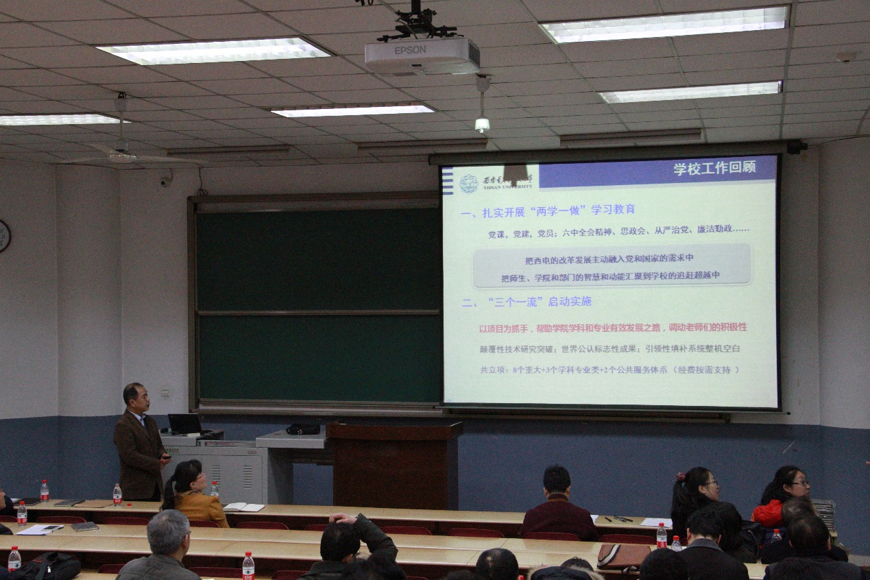 万象城娱乐awc线路院长仇原鹰首先全面准确传达了校长郑晓静院士在学校工作会议上的讲话精神,详细介绍了2016年学校取得的主要成绩、当前发展面临的重要机遇及挑战和2017年度学校的重点工作及工作要求。