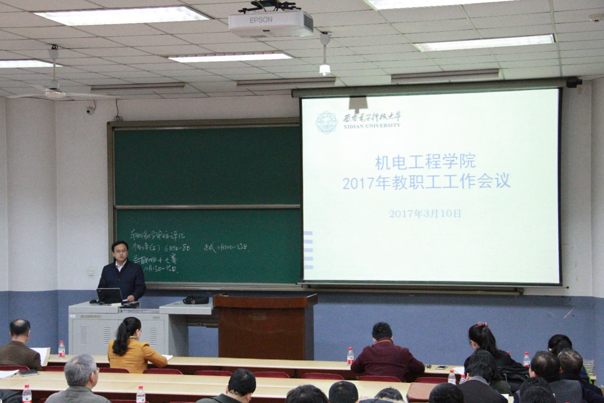 随后,仇原鹰回顾总结了2016年度学院各项工作取得的成绩,通过详实的数据分析对比,指出了学院目前存在的主要问题,并提出了相应的对策,安排部署了2017年学院重点工作:一是深入学习贯彻落实全国高校思政会和十八届六中全会精神,着力做好党建和师生思想政治工作;二是大力推进一流学科建设工作;三是扎实做好本科教学审核评估工作;四是积极推进工程教育专业认证工作;五是全力做好研究生学位授权点增列工作;六是完成新一轮岗位聘任,重点做好高层次人才队伍引育工作;七是积极配合学校办好“互联网+”大赛;八是进一步加强学院文化建设。