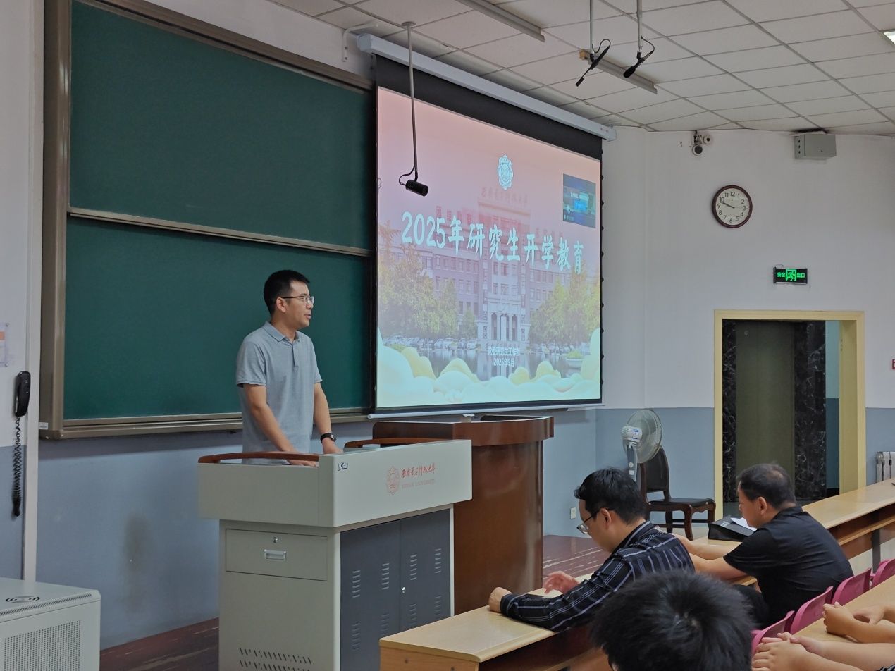 首先,訾斌代表学院对全体研究生新生的到来表示热烈欢迎,并就研究生阶段的学习与生活提出了殷切期望。訾院长提到,新的生活环境、管理模式、学习方式以及人际关系,都对同学们提出了更高要求。在做好学术科研之外,也要注重与导师和同学之间的沟通与协作,建立融洽的人际关系,为科研学习营造良好氛围。訾院长还介绍了今年学校的研究生招生总体情况,指出在校研究生规模与本科生接近,体现了学校高层次人才培养的持续发展。他鼓励同学们主动适应导师的指导风格,在日常互动中真诚相待、互相理解,若在学习与科研过程中遇到任何问题,可以及时与学院沟通反映。