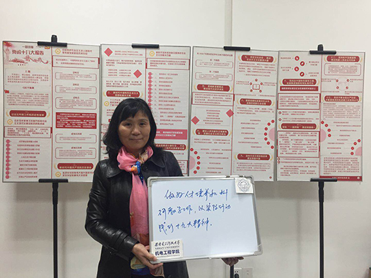 见面会结束后,老师和同学们还共同学习了十九大报告的主要精神,畅谈体会和感悟。学院将在下一阶段的工作中,组织各党支部深入学习十九大精神,以十九大精神为指导,检验和对照学院各项具体工作,统一思想、凝聚共识。