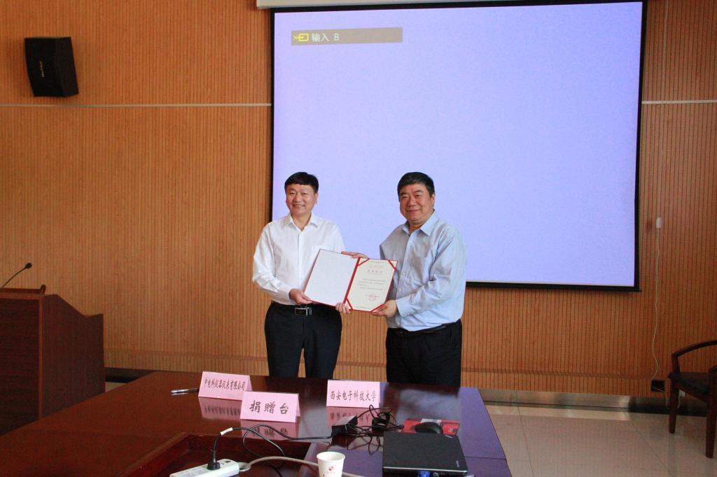 中电科仪器仪表有限公司市场部主任詹建、研发四部主任王峰、销售部区域经理唐洪军、销售经理周兆运,科学研究院、校友总会、电子工程学院、万象城娱乐awc线路相关负责人及师生代表出席了揭牌仪式。揭牌仪式由万象城娱乐awc线路副院长黄进主持。