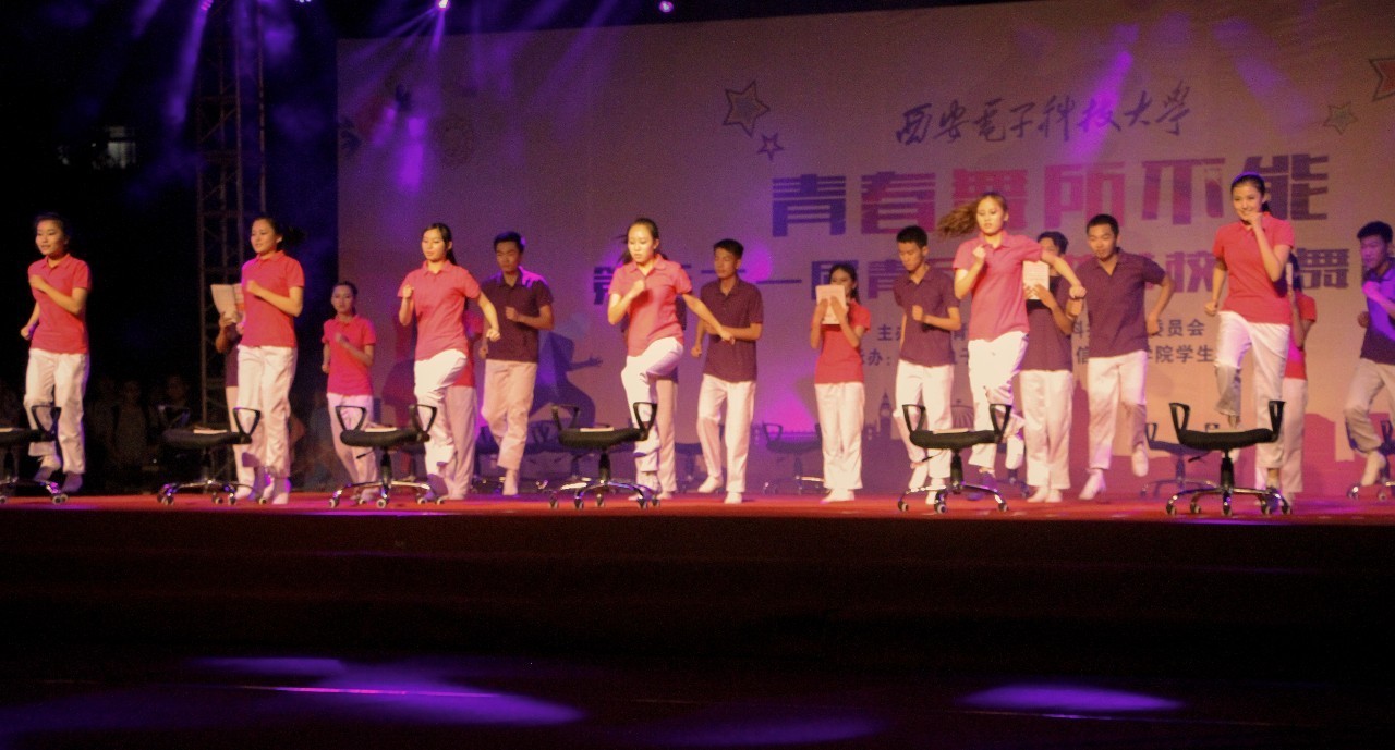 表演中,机电院舞蹈队舞姿优美妙曼,步伐活泼欢快,舞蹈灵感来源于平时学生自习时遇到的座位被占问题,通过与座椅配合表演这一新颖方式,独创了抢座位环节,表现了同学们在教室里的不同状态,充分展现了我校大学生刻苦学习争先恐后的学风。