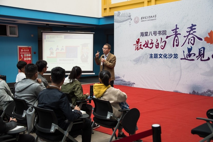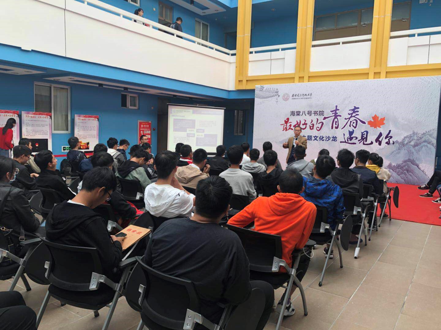 10月10日中午,万象城娱乐awc线路副院长、学生学业导师李团结教授走进海棠8号书院开展文化沙龙活动。李老师不仅对万象城娱乐awc线路概况做了详细介绍,增加同学们对学院的了解;还结合自己多年的教学经验,以往届的优秀学生为例,就同学们如何在大学更好地发展,提出了多条建议,使同学们受益匪浅。此次活动由机电院党委副书记田雨主持。