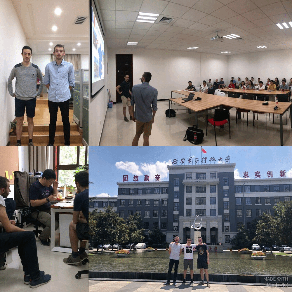 法国艾克斯-马赛大学(L'université d'Aix-Marseille)的历史可追溯至1409年,目前是法国规模最大的大学,也是法语国家和地区最大的大学。Tanguy JAOUEN与Romain BUISSIERE系法国艾克斯-马赛大学工程学院在读硕士生。按照法国高等学校培养规则,在读硕士生必须在培养单位外的高校与研究结构或公司进行实习。在前期国际交流与合作科研的基础上,经法方Claudia Frydman教授推荐,并在我校国际处、国教院和机电院的大力支持下,两位学生顺利到达我校开展实习工作。实习期间,两位法国学生遵循我校国际学生的管理规定;按照机电院与科研团队的要求,参与学校、学院及团队的国际化交流与学术活动,进行了合作科研、与研究生及本科生的交流等工作内容。
