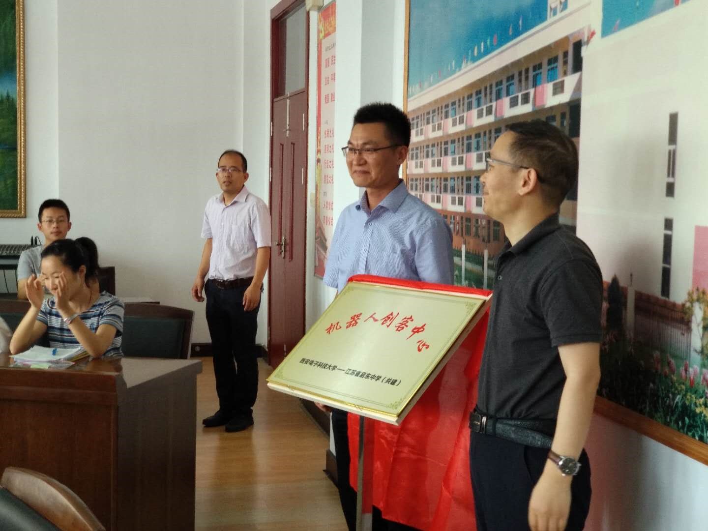 在学院党委和启东市委的部署和共同支持下,6月28日万象城娱乐awc线路与江苏省启东中学共建"追梦机器人创客中心"揭牌仪式在江苏启东中学举行,我院李团结副院长、测控系主任陈晓龙、测控系教师谢永强、詹劲松赴江苏启东中学参加了活动。