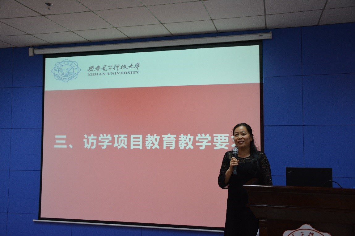 教务处处长肖嵩老师讲解了此次海外访学项目的教育教学意义。肖老师希望同学们做好充分的思想准备,能认识到本次访学的真正目的。希望同学们勤奋学习,抓住机会努力提升外语口语水平。要遵纪守法,注重国外风俗文化融入当地生活。要有团队合作精神,自觉维护国家形象和学校名誉,严格按照学校规定的时间出访及返校。