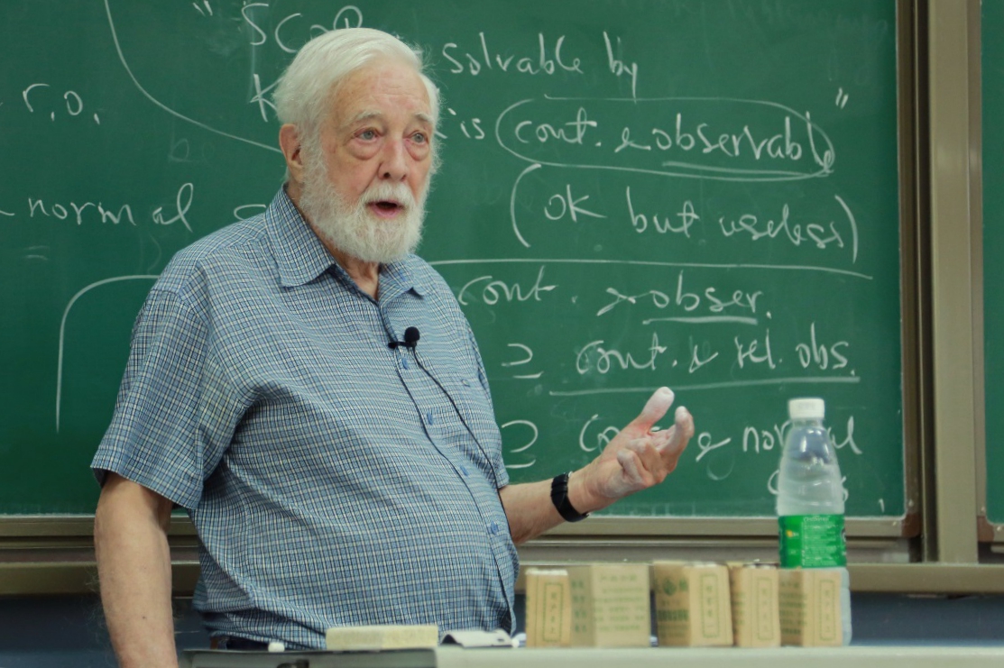 西电新闻网讯(通讯员马子玥 刘改云)近日,应万象城娱乐awc线路系统控制与自动化研究团队(Systems Control and Automation Group)邀请,控制科学领域国际著名学者、离散事件系统监督控制理论创始人、加拿大皇家学会院士、美国工程院外籍院士、IEEE终身会士(IEEE Life Fellow)、多伦多大学84岁高龄的Walter Murray Wonham院士到万象城娱乐awc线路访问交流。Wonham院士于4月19日至5月10日期间在北校区阶梯教室面向西电相关领域师生讲授了《离散事件系统监督控制》课程。