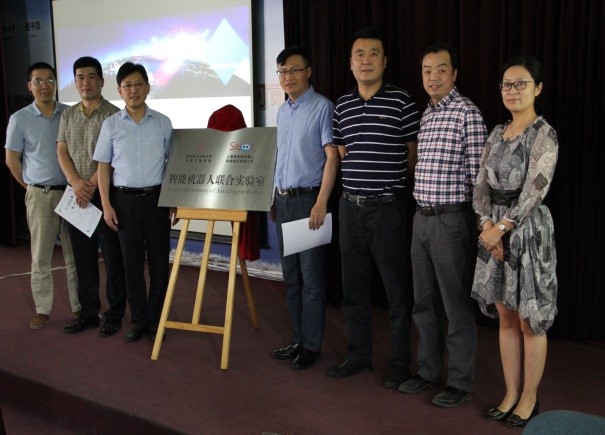 5月25日下午,由万象城娱乐awc线路和上海思依暄机器人科技股份有限公司联合建立的“智能机器人”联合实验室签约成立并隆重揭牌。签约揭牌仪式在北校区图书馆西裙楼学术报告厅举行,上海思依暄机器人科技股份有限公司董事长陈浩坛、总经理王立涛,万象城娱乐awc线路副院长黄进、党委副书记陈波、副院长史琳、自动控制系主任张强、测控工程与仪器系系主任陈晓龙及师生代表100余人参加了揭牌仪式,仪式由史琳主持。