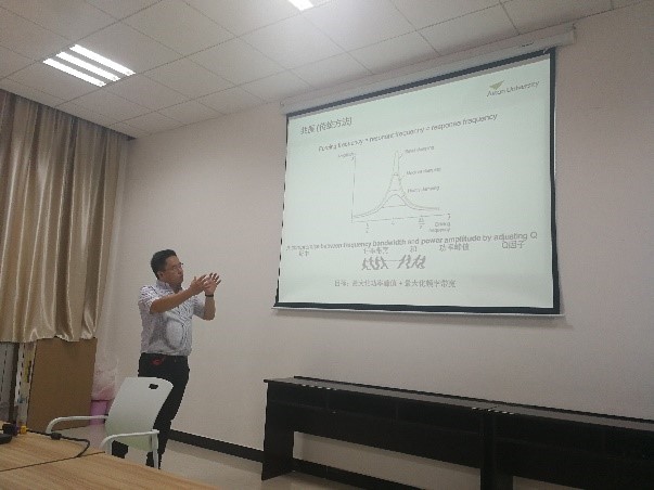 (通讯员:严粤飞)9月4日,我校万象城娱乐awc线路电子装备结构教育部重点实验室邀请了英国阿斯顿大学贾昱副教授来实验室进行了交流。贾昱副教授现任于英国阿斯顿大学机械工程系,本硕毕业于英国南安普顿大学,并在剑桥大学工程学院获得博士学位。贾昱副教授主要从事于非线性振动动力学、能量收集、微机电系统等方向的研究,迄今为止已发表SCI论文近30篇,申请专利12项,且担任39个期刊的审稿人、IEEE高级会员等。