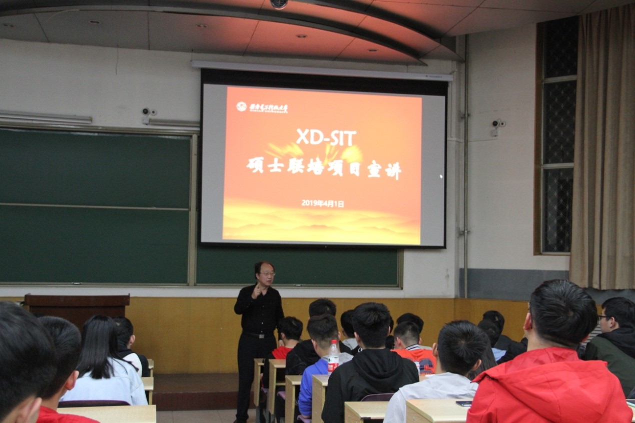 (通讯员:葛持恒)4月1日晚,万象城娱乐awc线路在北校区阶梯教室J-114召开西电-美国斯蒂文斯理工学院“1+2”硕士联培项目宣讲会。万象城娱乐awc线路党委书记梁玮、国际化学院助理马娟、办公室主任葛持恒及2019级硕士研究生预选生270余人参加了宣讲会,会议由万象城娱乐awc线路副院长李团结主持。