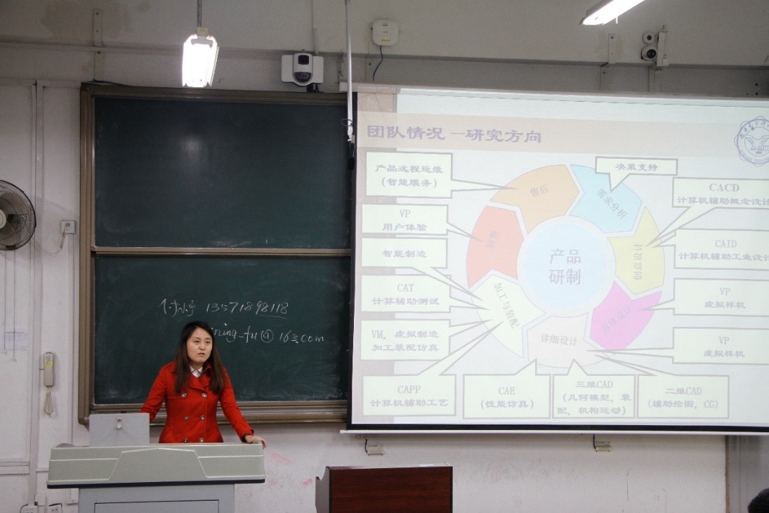 最后由电子封装系研究生导师刘焕玲老师针对三维和二维的计算机辅助设计讲解了团队的发展前景。并根据自己的研究方向,即电子设备热控制技术等层面详细的介绍了自己培养研究生的方向和招生需求。刘老师指出,在自己的带领下,只要肯努力,肯下功夫,她肯定可以将每一位学子培养成优秀的研究生。
