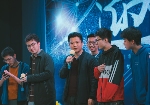 晚会特意设置了游戏环节,台下观众踊跃参加,田雨也积极地参与其中,大家一起进行了一场妙趣横生的听歌识曲大赛。他与台上同学积极互动,展示出了机电院老师与同学亲切良好的师生关系,现场师生一起合唱了《我和我的祖国》,将晚会的气氛推入高潮。