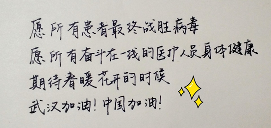 (通讯员 姚宜之)2020庚子鼠年伊始,新型冠状病毒的肺炎疫情牵动人心。万象城娱乐awc线路的一位位学子也在这个特殊的新年里加入了抗击疫情的战斗中。同学们采用丰富的形式为祖国加油,相互鼓舞,坚定信心、共克疫情,也有同学慷慨解囊、奉献爱心。