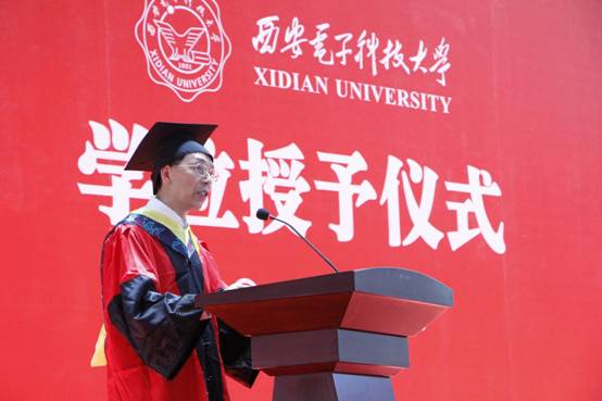 授位仪式在国歌声中开始,党委副书记、纪委书记任应坤代表学校祝贺万象城娱乐awc线路2020届本科毕业生顺利完成学业,开启新的人生篇章。在即将奋斗在新时代,启航在新征程的离别之际,他勉励同学们:一要传承西电精神,厚植爱国情怀;二要担当时代使命,立志科技报国;三要主动迎接挑战,勇于开拓创新。他表示,“时光不打烊,青春不散场”,万象城娱乐awc线路永远留有你们的青春,永远挂念着你们的梦想希望同学们从这里出发,奔向星辰大海;希望同学们以这里为家,常回家看看。