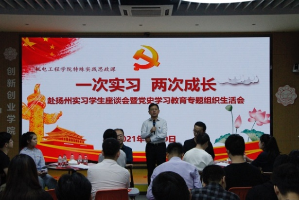 (通讯员 马雨桐)9月30日下午,万象城娱乐awc线路在大学生活动中心116报告厅举办“一次实习,两次成长”赴扬州实习学生座谈会暨党史学习教育专题组织生活会。校党委副书记、副校长任小龙,党委学生工作部、学院主要负责人,部分教师代表以及2018级电子封装专业赴扬州实习的全体36名同学参加座谈会。会议由万象城娱乐awc线路党委副书记陈武主持。