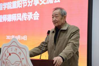 黄进首先向各位退休老教师表达了节日的祝福,随后通报了学院近年来的建设发展情况和取得的成绩。他讲到,近年来,在学校党委的正确领导下,全院师生上下齐心、团结奋进、求真务实、开拓创新,在人才培养、科学研究、合作交流等方面取得了可喜的成绩,这些成绩的取得离不开各位老教师曾经的付出以及一如既往对学院工作的关心、理解和支持。学院拥有这么多的老教师,你们既是学院事业发展的建设者,又是学院历史的见证者,是学院无形和无价的宝贵财富,希望老教师能够利用长期积累起来的丰富知识和宝贵经验,为学院发展进言献策、发挥余热。为更好的发挥退休老教师传帮带作用,学院邀请各位老师参与指导青年教师教学培养、科研成长和本科生教导工作,与全院师生一道,共同争创一流学科建设,续写学院发展新辉煌。