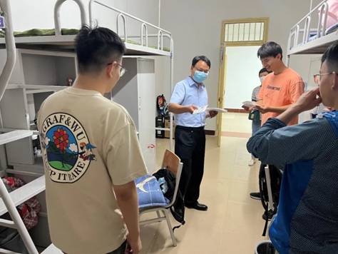 除了迎新外场,党委副书记陈武和机电院导员周蕾还一同前去新生宿舍,向新生们传达欢迎与祝福。陈书记亲切地同新生们聊了每个人所来自的省份,对西安的认识。并询问对学校的饭菜等条件是否满意。最后向同学们了解了导师的情况,叮嘱大家要保持良好的精气神,认真学习,认真科研,同时也要注意疫情下要做好防护工作,并给新生们分发了学院的定制口罩。