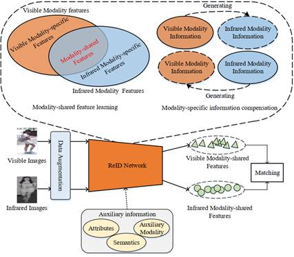 图1.可见光-红外图像跨模态行人重识别(VI-ReID)模型基础框架