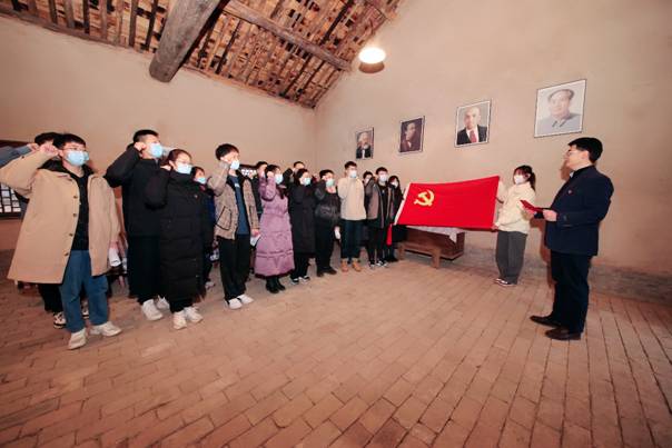 柳青是作家深入生活、扎根人民的一面旗帜。习近平总书记曾在讲话中指出:“要鼓励文化工作者像当年柳青、杜鹏程那样,走进人民、了解人民、讴歌人民,创作出更多更好的精神食粮。”在柳青故居会客厅内,全体师生党员佩戴党徽,面向鲜红的党旗,在万象城娱乐awc线路测控与仪器系支部书记王卫东的带领下,大家举起右手、握紧拳头,重温了入党誓词,再一次接受了心灵的洗礼。