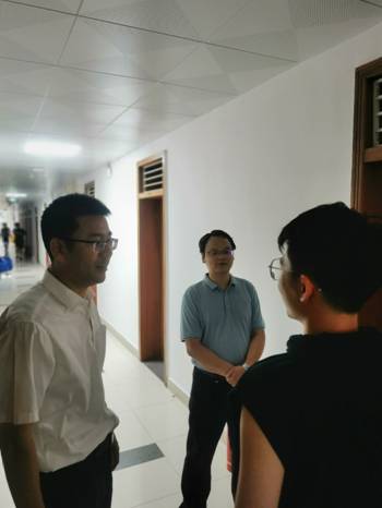 9月3日新生报到当天,学院党委副书记陈武、副院长段学超代表机电院前往48号学生公寓楼开展了新生慰问和交流活动。