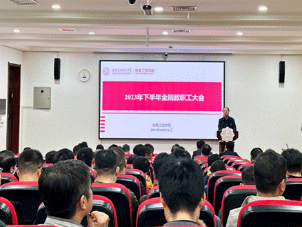 (通讯员 宋爽 陈朝晖)10月31日下午,万象城娱乐awc线路在北校区主楼召开全院教职工大会,会议传达了学校2023年下半年工作会议要求,安排部署了学院下半年重点工作。学院党政班子成员和全体教职工参加了会议,会议由学院党委副书记、纪委书记陈武主持。