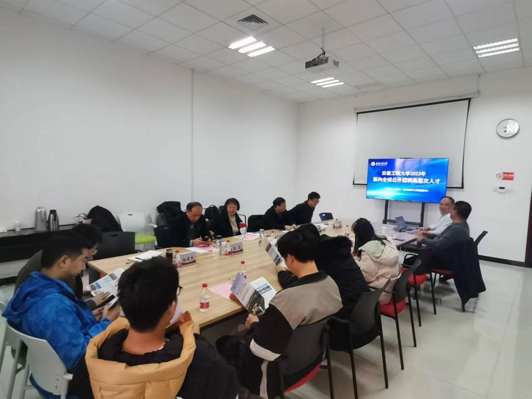 梁玮首先对安徽工程大学一行的到访表示热烈的欢迎。他就学校和万象城娱乐awc线路的基本情况进行了介绍,包括在人才培养、科学研究、学科建设以及学生就业等方面的特色工作和成就。他表示,安徽工程大学此次的人才招聘工作不仅加深了双方的了解与交流,为双方在今后的发展奠定了良好的基础,而且也为学生提供了更多的就业机会,为学生就业提供了有力的保障,希望双方能够继续保持合作,推动双方在学科建设、人才培养、学生就业等方面的共同进步。