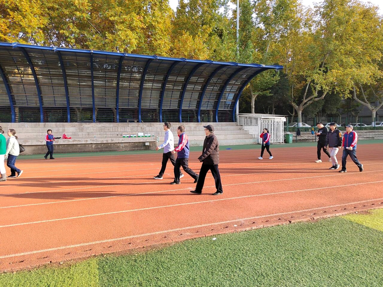 各系老师在到达操场后,以积极饱满的精神状态先分组进行了热身运动。