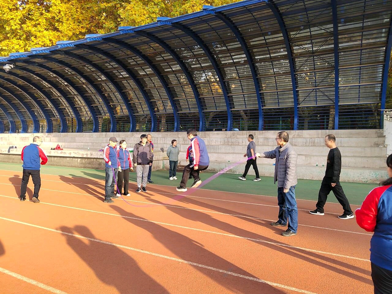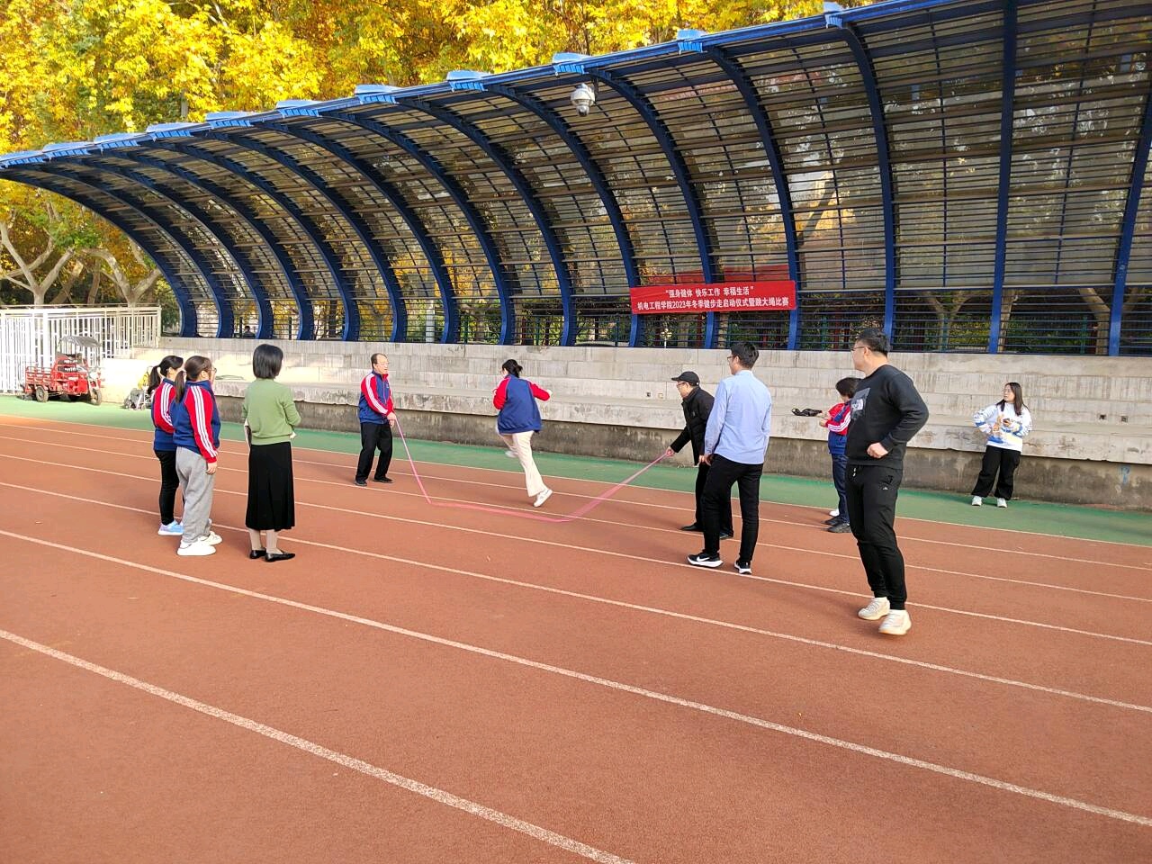 为丰富教职工精神文化生活,提高老师们的健身意识,以充沛体力和良好精神风貌做好教学和科研工作工作。在11月22日下午,万象城娱乐awc线路在北校区大操场组织开展了以“强身健体 快乐工作 幸福生活”为主题的2023年冬季健步走启动仪式暨跳大绳比赛,学院教师以系所为单位,积极踊跃参加,活动取得了圆满成功。