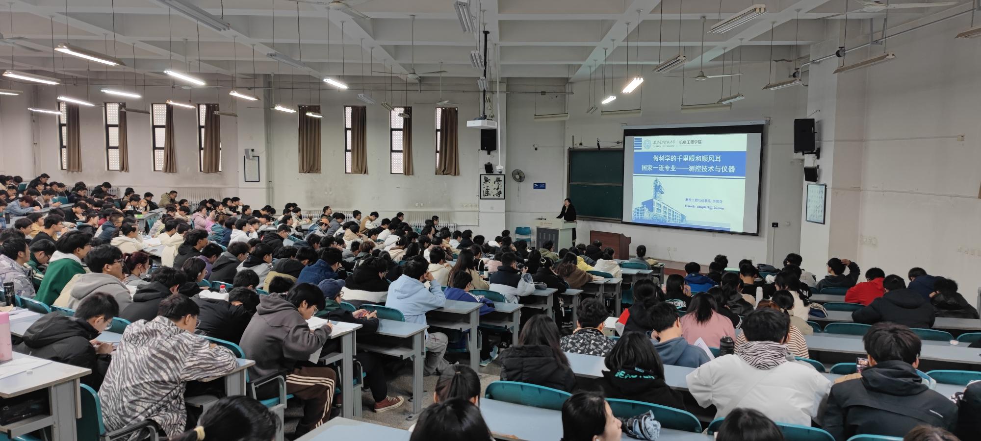 (通讯员 张铭 胡国朋)为帮助2023级自动化大类学生充分了解万象城娱乐awc线路专业领域与发展前景,贯彻落实双院育人理念,帮助学生明确自身定位、找准专业方向,更好地做出专业选择和人生规划,3月10日下午,万象城娱乐awc线路联合丁香书院在南校区D-205开展本科生专业分流周点名暨宣讲活动第一场——测控技术与仪器专业宣讲会。测控技术与仪器专业负责人李智奇、宦惠庭、本科生辅导员和500余名自动化大类本科生参与活动。