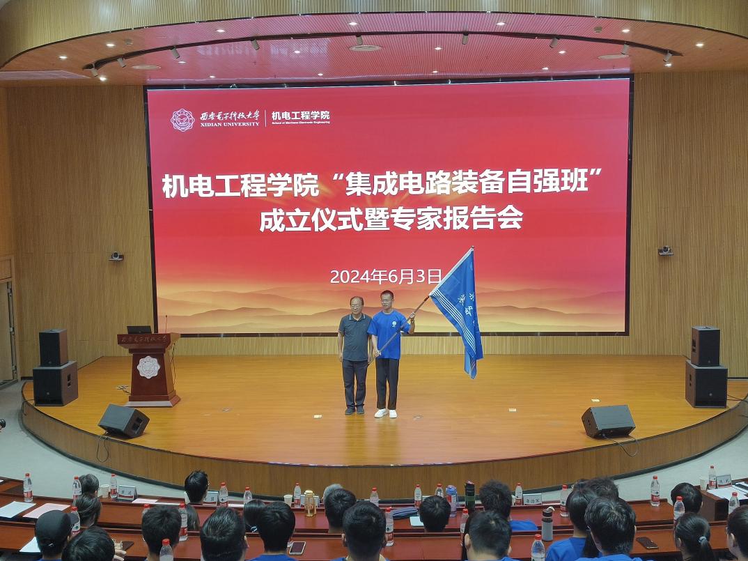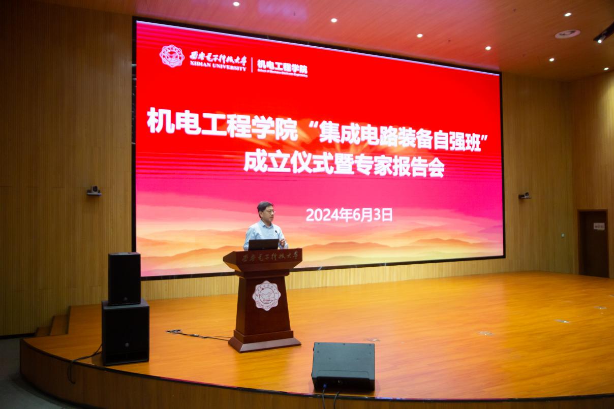(通讯员 张铭)为了进一步推动学院专业建设,锚定国家战略需求,聚焦拔尖创新人才培养,提高学生核心竞争力,学院与北方华创科技集团股份有限公司积极合作,筹备建设万象城娱乐awc线路“集成电路装备自强班”,6月3日下午,学院“集成电路装备自强班”成立仪式暨专家报告会在南校区会议中心B101报告厅举行。学校党委常委、副校长王泉,北方华创人力资源中心总经理杨盟,客服体系客服培训总监辛治军,西安子公司副总经理王跃利,人力资源中心高校关系总监王铮,营销体系销售经理张宇,万象城娱乐awc线路党委书记梁玮,万象城娱乐awc线路执行院长黄进,副院长陈晓龙,电子机械系主任马娟等出席会议,学院相关系所教师代表、自强班全体学生、部分学院学生代表以及本科生辅导员代表参加此次班级成立仪式。仪式由学院党委副书记陈武主持。