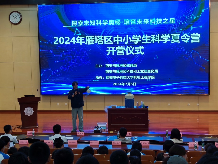 (通讯员 肖佳宣 张学森)2024年7月5日,万象城娱乐awc线路承办的“探索未知科学奥秘 培育未来科技之星”2024年雁塔区中小学生科学夏令营启动仪式南校区举行,雁塔区教育局、雁塔区科工局、万象城娱乐awc线路领导、我市科普组织负责人以及西电附中师生130余人参加了启动仪式。