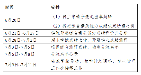 1.确因身体原因、存在学业困难等特殊情况需要申请分流退出卓越班的学生,可及时向学院提出书面申请,一事一议,不受集中分流时间限制。