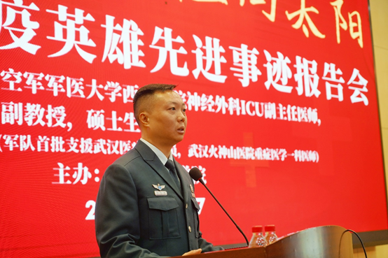 胡世颉的报告,从除夕夜的离别开始。他讲到,1月23日大年二十九深夜接到紧急出征的命令,作为ICU重症专家,他感受到了自己肩上的责任。虽然医院领导是在询问自己的意见,虽然他已经收拾了行礼准备好兑现自己对家人的旅行承诺,但面对部队号令,第一时间想到的是“养兵千日,用兵一时”,想到“召之即来,来之能战,战之必胜”的军人使命。
