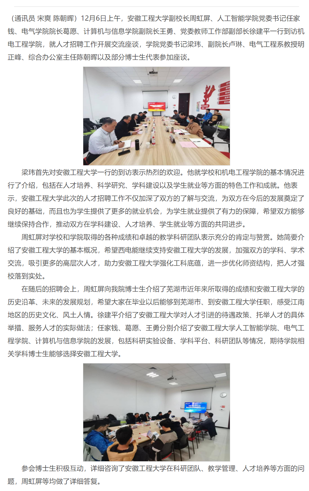 安徽工程大学一行到访万象城娱乐awc线路进行交流座谈和人才招聘宣讲