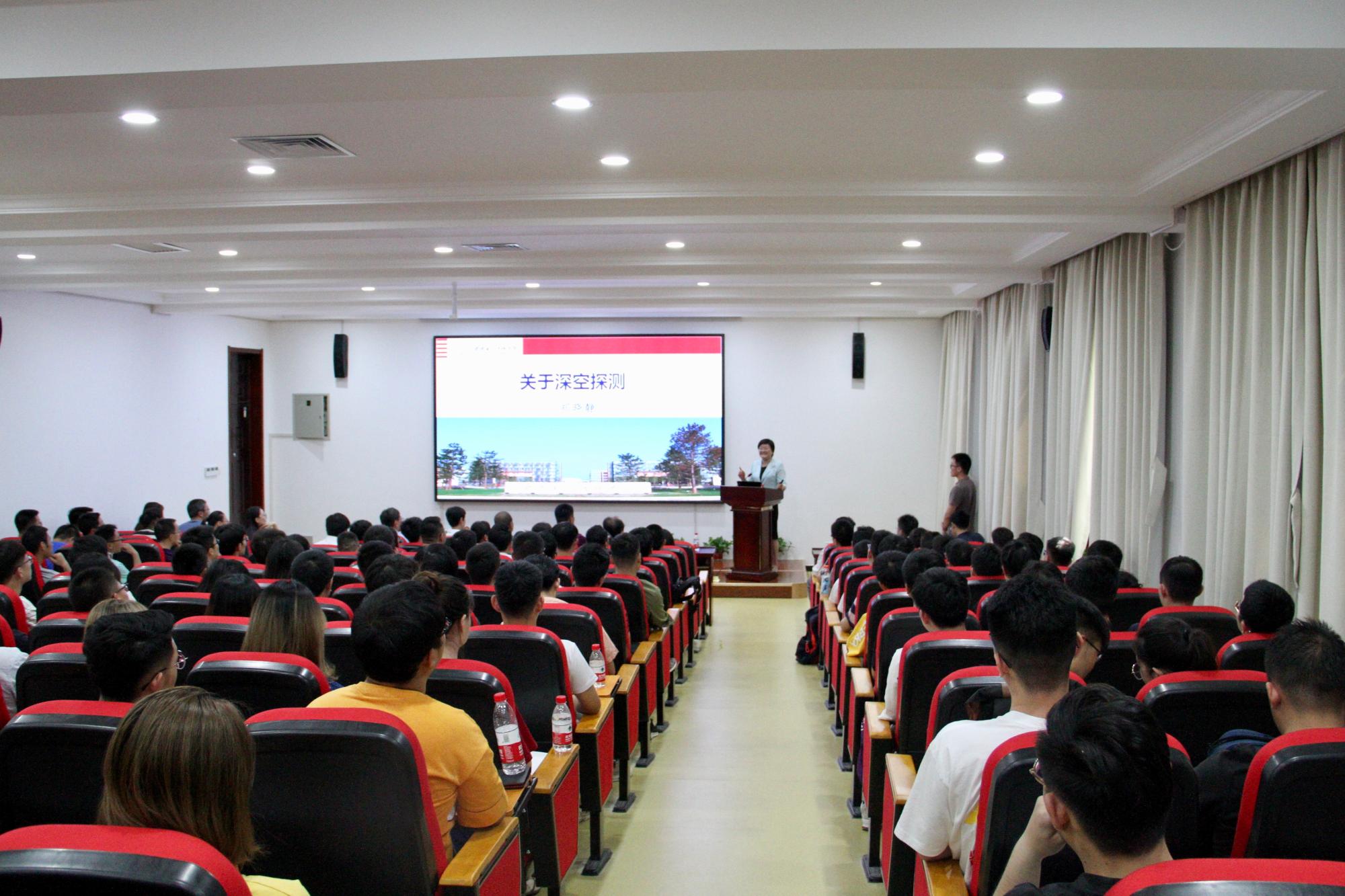 5月26日下午3点,我院在北校区“菲声493”学术报告厅举办“机遇+”高峰论坛,郑晓静院士应邀作了题为《关于深空探测》的学术报告,面向广大师生介绍“觅音”计划。学院领导班子、师生代表200余人共同聆听了报告。报告会由执行院长黄进教授主持。
