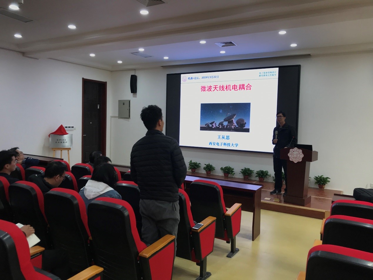 随后,万象城娱乐awc线路科研副院长王从思教授作为本次“机遇+”系列论坛的发起者也是首次报告人,在本次的前沿论坛中,为大家带来了题为《微波天线机电耦合》的精彩学术报告。王教授梳理了微波天线机电耦合的研究现状与发展方向,介绍了机电耦合理论在不同领域的工程应用情况,并重点介绍了万象城娱乐awc线路电子装备结构设计教育部重点实验室在机电耦合领域的研究进展。最后,针对报告中微波天线机电耦合的相关问题,在场师生与王教授进行了热烈的交流讨论。