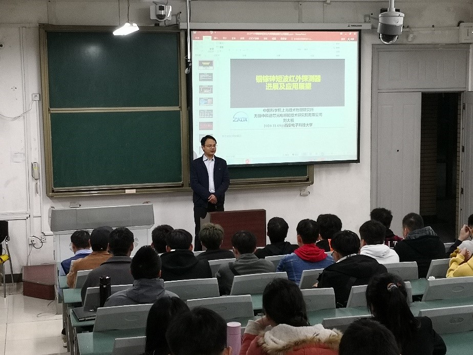(通讯员 王永坤)2020年11月9日,中国科学院上海技术物理研究所研究员刘大福应万象城娱乐awc线路学院助理王永坤的邀请,为机电院师生作题为“铟镓砷短波红外探测器进展及应用展望”的报告会,本场报告会于南校区A105教师举行,报告由王永坤主持,万象城娱乐awc线路副院长陈武,电子封装系主任周金柱,电子封装系骨干教师高宏伟、曹艳荣、解忠良以及电子封装系学生参加了这次报告会。