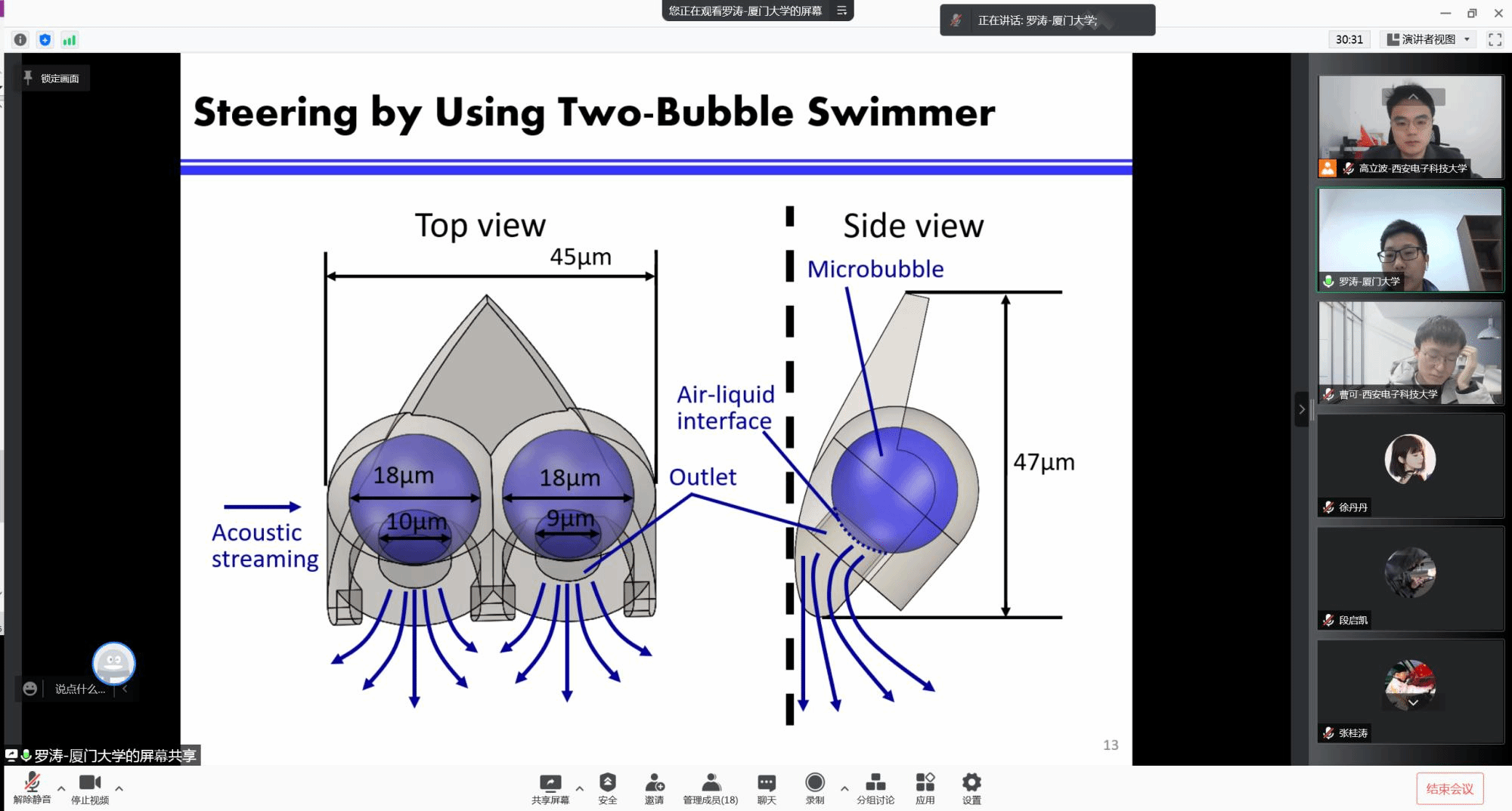 (通讯员 高立波)11月26日上午,应万象城娱乐awc线路高立波的邀请,厦门大学航空航天学院机电工程系助理教授应邀在线上作了题为《Remote Powering and Control of Biologically Inspired Micro-Robotic Swimmers via Ultrasound Waves》的学术报告。本次报告因疫情原因改为线上,高立波,王明智,曹可等测控系师生参加,高立波副教授主持。