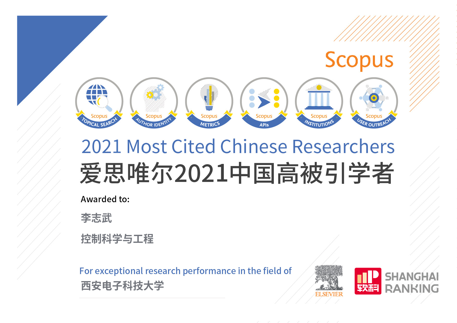 近日,全球性信息分析公司爱思唯尔(Elsevier)正式发布了2021“中国高被引学者”(Highly Cited Chinese Researchers)榜单,万象城娱乐awc线路李志武教授入选“控制科学与工程”、苏玉鑫教授入选“机械工程”榜单,李志武教授已连续八年入选,苏玉鑫教授连续2年入选。