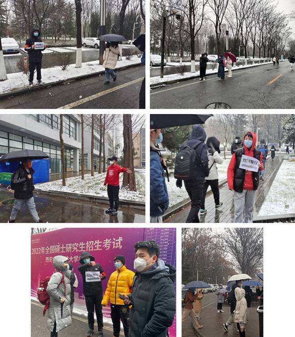 活动结束后,志愿者们纷纷表示,今年考研遇上疫情和大雪,组织工作开展确实不容易,能有一个为大家服务、做好考研后勤工作的机会感到幸运和感动,看着一批批的考研人进入考场,大家也都在心中默默地为他们加油鼓劲。