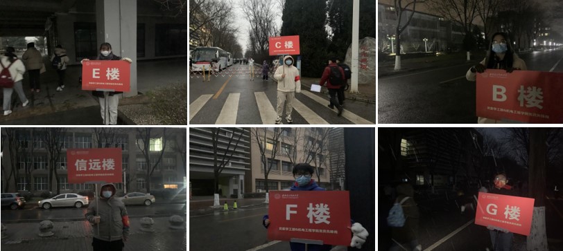 今日寒潮来袭,雪漫长安,学校党委学工部考虑到志愿者同学们的健康和保暖,早早为大家准备好了早餐送到宿舍楼大厅,并再三叮嘱同学们多穿衣服,戴好手套和口罩。按照各小组分工,志愿者简单用餐之后马上出发,于6:30到达各自岗位,开始引导工作,他们身穿红色xdu的志愿者服装,各个精神抖擞、昂扬向上,热情地欢迎其他院校的考生来到西电考点,有序地引导他们进入考场。