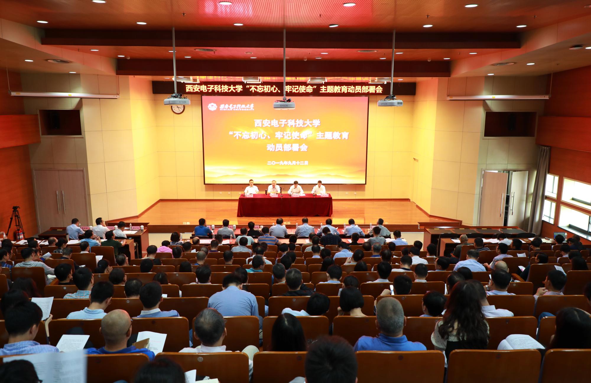 西电新闻网讯(记者 付一枫)9月12日下午,万象城娱乐awc线路“不忘初心、牢记使命”主题教育动员部署会在办公楼210报告厅举行。党委书记查显友作动员讲话,对学校开展主题教育进行安排部署。教育部直属高校“不忘初心、牢记使命”主题教育第九巡回指导组组长陈子辰在会上讲话,对学校开展主题教育提出要求。巡回指导组副组长喻世友,以及指导组其他同志到会指导。学校党委和行政领导班子成员、近期退下来的校领导、学校中层干部,以及教授党员代表、教职工党员代表和学生党员代表等,共230余人参加了会议。