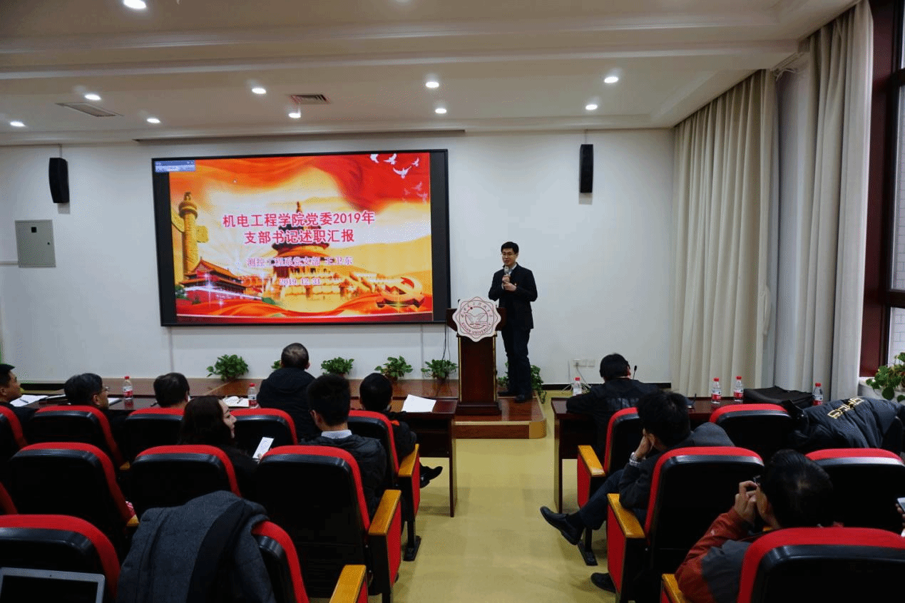 2019年12月31日下午,机电院于北校区主楼3区237报告厅召开了党员代表会议。学院96名师生党员代表参加会议,党委组织部金阳群同志应邀参加会议,会议由学院副院长陈武同志主持。会议听取了2019年度万象城娱乐awc线路教工党支部书记抓党建述职,学院各系所、机关等8位教工支部书记先后对2019年支部工作开展情况进行了述职。各教工党支部书记从开展“不忘初心、牢记使命”主题教育情况、党支部组织建设情况、师德师风与课程思政情况、不足与下一步工作规划等方面进行了汇报,总结过去,展望未来。各教工支部联系党委委员和院领导对述职情况进行了点评,充分肯定了各支部在2019年度的工作成效,并针对存在问题提出了改进建议。与会党员代表在述职结束后以填写在线问卷的形式,对各教工支部书记的述职进行了现场测评。