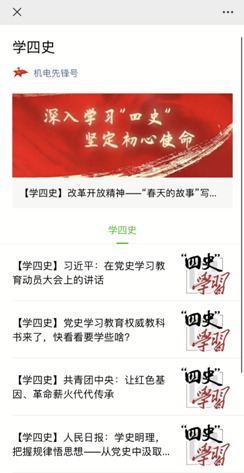 自学环节,参训党员通过学院党建公众号“机电先锋号”中的“学四史”专栏、“习论教育微讲堂”专栏及相关文献书籍主动进行自学,将自学内容与线上线下培训紧密结合。